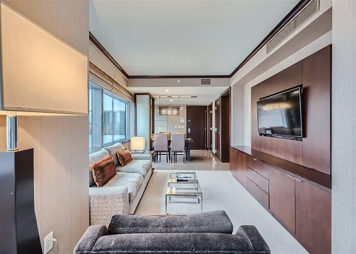 Die 75 m² großen Corner Suite At Vdara Hotel And Spa Las Vegas liegt in unmittelbarer Nähe von verschiedenen Sehenswürdigkeiten der Gegend: Spa & Salon Vdara befindet sich unter anderem circa 5 Minuten zu Fuß von hier entfernt. In den 1-Zimmer-Apartments, das nur 600 Meter vom The Cosmopolitan Hotel liegt, finden die Gäste einen Jacuzzi.